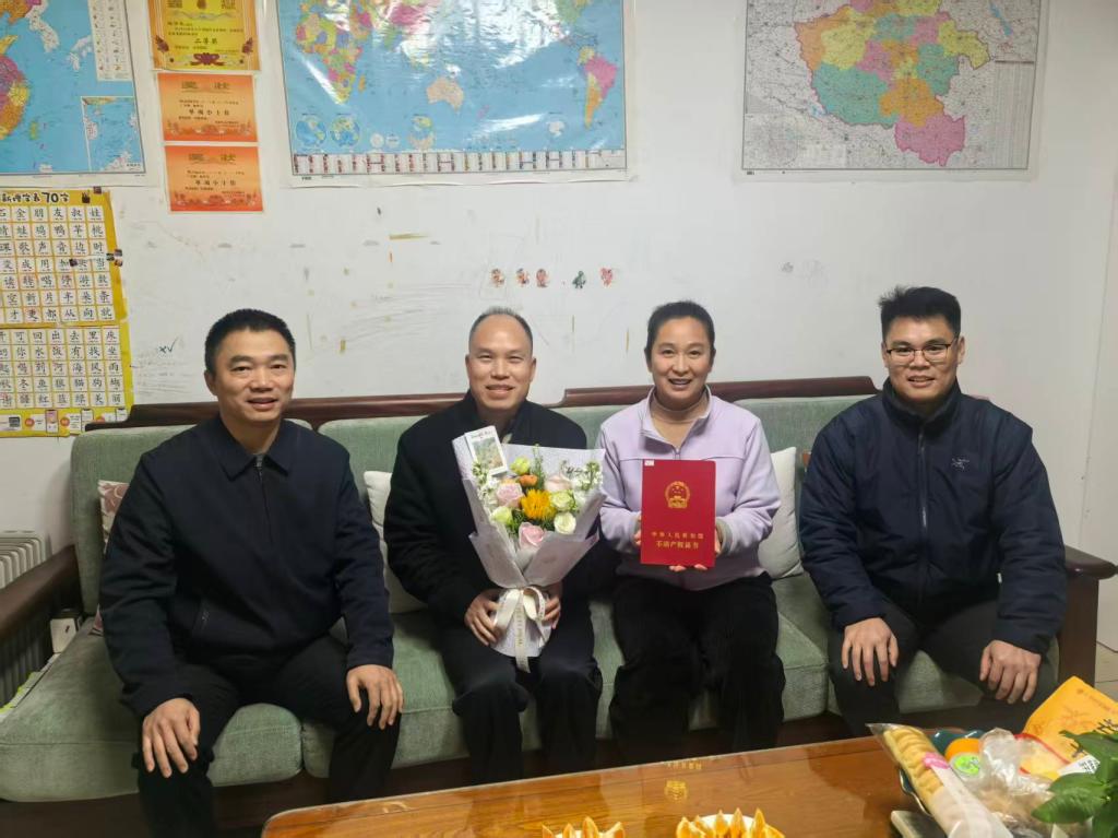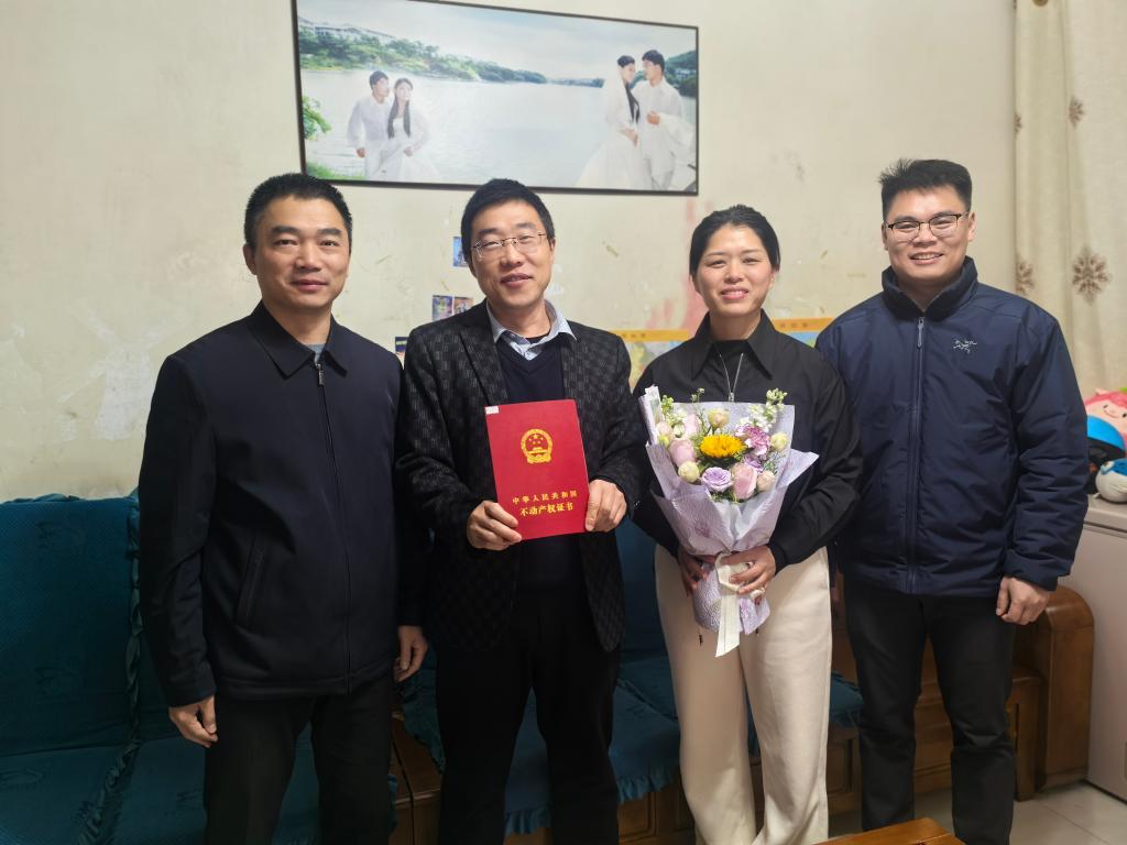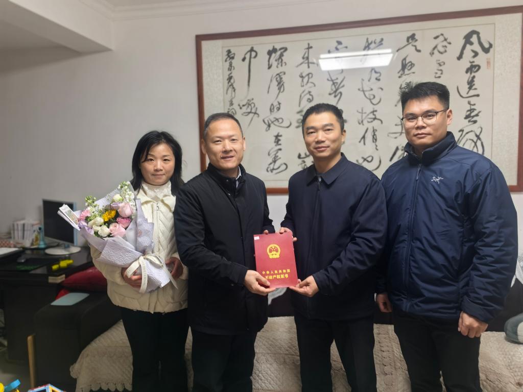 “多年的‘心头大事’终于落地,感谢国资处同志专程送来!”近日,我校屏风校区7-15栋一位老师接过崭新的不动产权证书,难掩激动之情。1月12日,国资处负责人带队开展第二批不动产权证书“送证上门”服务,将办理好的权证逐一交到教职工代表手中。这是国资处践行以人民为中心的服务理念,着力解决师生急难愁盼问题的又一次暖心行动。